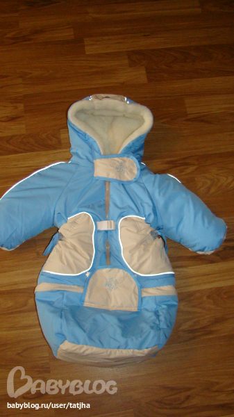 у нас у сына такой был, если не ошибаюсь размер 80 или 86 и носили мы его с 3 мес как мешок а потом еще в следующую зиму с ножками, а сейчас дочка будет в нем щеголять, очень классный, уже 3 года ему а выглядит как новый!