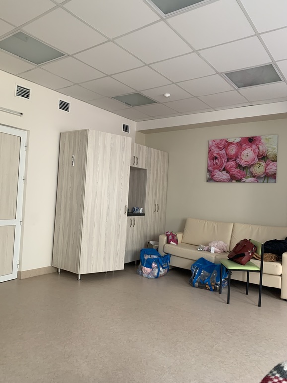 В палате 4 кровати: хорошие, современные, с пультом управления, своим освещением, розетками. Туалет и душ в палате. Пост медсестры тут же в палате, но она тут не сидит:)). Чисто, аккуратно.
