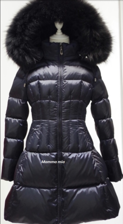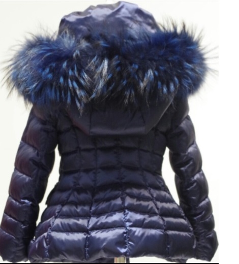 4.Пальто.Синий , черный , енот, наполнитель пух.Цена 84 дол.