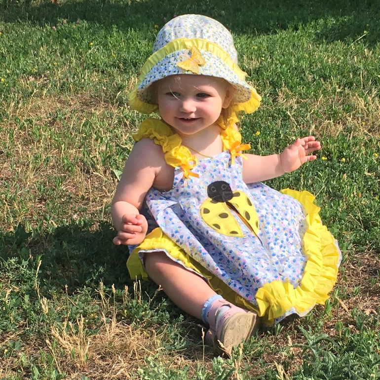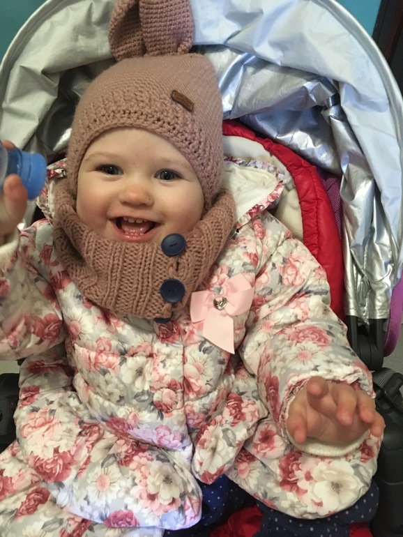 Вес 9350 (+50г), рост прежний 74,5. Едим ттт хорошо, каши молочные любит , но без добавок . Пюрешки фруктовые , мясные, творог. Единственное беда с питьем , ни сок , ни воду не хочет , только грудь. Играем в ладушки , умеет целоваться , говоришь Сонь поц...