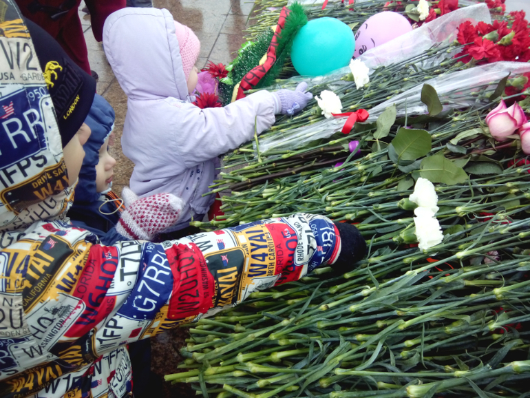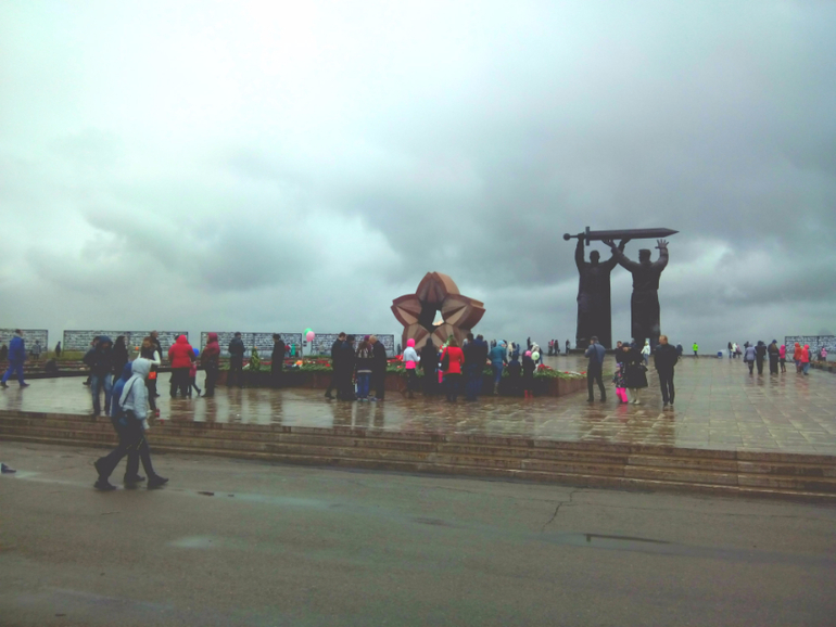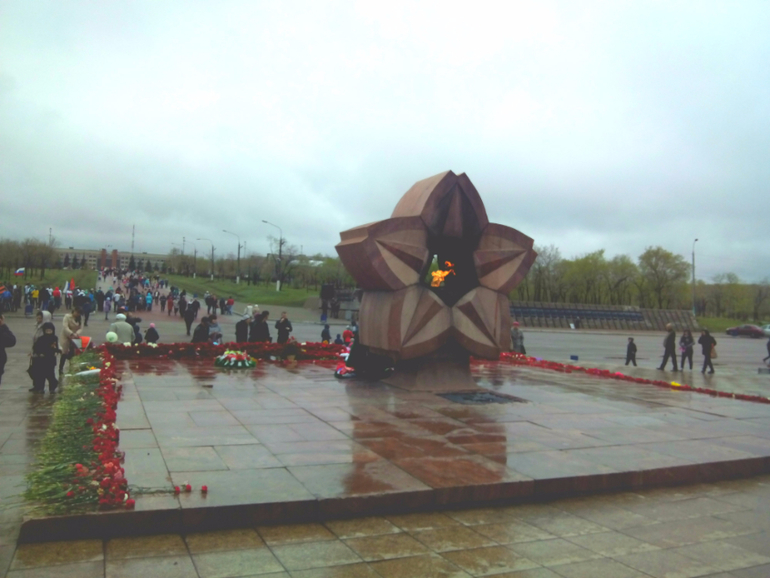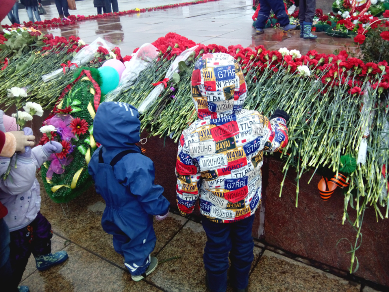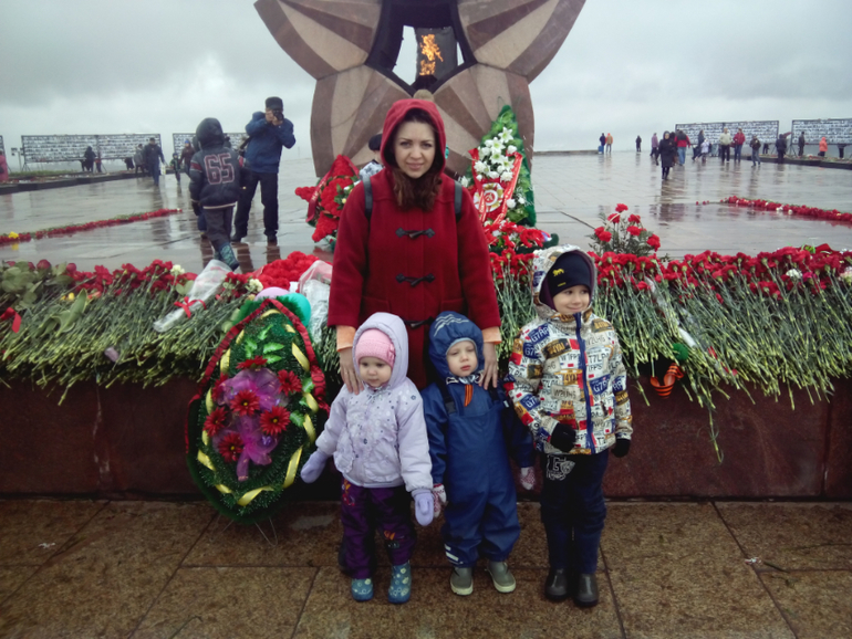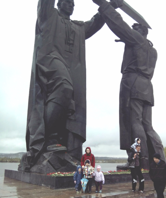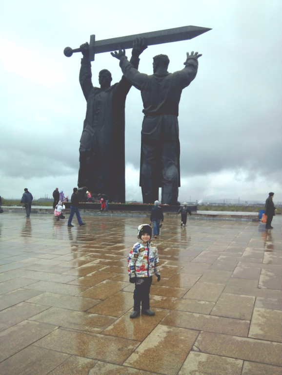 На местный парад мы не пошли,т.к. погода ужасная была,холодрыга,дождь((Но поехали днем,когда дождя не было.Купили гвоздик.Детям заранее было рассказано куда едем и зачем.Савелий знает этот праздник,поэтому понимал зачем туда едем.Младшие просто знали,что сегодня праздник и нужно положить цветочки))Поехали к нашему памятнику Тыл Фронту.Кто не знает,это первая часть триптиха памятников,посвященный войне, с главным атрибутом-мечем.Первый стоит у нас в Магнитогорске-рабочий передает кованный меч воину,вторая часть стоит в Волгограде-Родина Мать зовет!А тетья часть стоит в Берлине-Воин-освободитель.В этом году у нас открылась Стена Памяти - часть проекта «Помни меня», в котором принимают участие шесть городов Челябинской области, в том числе и Магнитогорск. Общая длина Стены составит четыре километра, в нашем городе - 200 метров. Всего на стендах мемориала будет размещено около 150 тысяч фотографий наших земляков. Если бы я знала по раньше,то обязательно отдала фотографии своих прадедов и деда мужа.В след.году сделаем это обязательно!!Народ был,шли и стар и млад,с цветами,лентами,флагами.Деткам дала гвоздички и они положили к вечному огню.Потом прошлись мимо стены памяти,встретили пару ветеранов,поздравили их!Немного сфоткались и поехали домой,т.к. очень замерзли(((Дома смотрели концерт по первому каналу.Очень меня впечатлил!!!Замечательные песни,очень тронули,не выдержала и разрыдалась,когда пела Дина Горипова песню "До свиданья,мальчики!"..Про "Алешенька,сынок",да многие песни вызывали слезы,даже у мужа глаза были на мокром месте(короче мы стоим друг друга).Как точно были показаны все самые страшные и важные события войны!Просто,но так жизненно..В общем,вчера,для меня был самый красивый,самый торжественный,самый чувственный праздник,посвященный Великой Победе!!И что заметила,глядя на лица дорогих ветеранов,как на яву,так и по телевизору,для них это так же особенный 9 Мая!Безумно жаль,как этот великий праздник прошел не прошел на Украине((Не буду писать ни каких комментарий,просто мои эмоции зашкаливают..