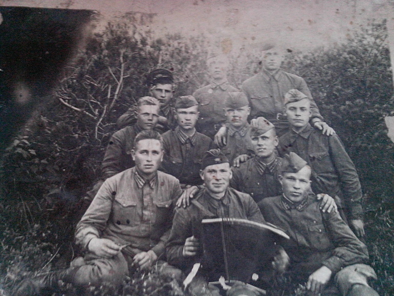 Это июль 1943г мой прадед снизу слева.После того,как фронт там стал недействующим,его перебросили на Курскую дугу.Воевал там,ранило его.Пришел домой живым.