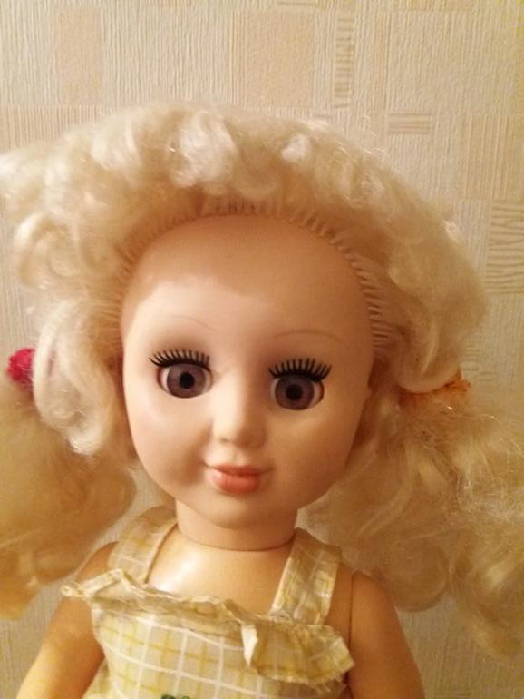 Доброй ночи рукодельницы! У меня появилась куколка 90-х годов, на личико мне очень понравилась, но волосы пакля нерасчесываемая, вот она