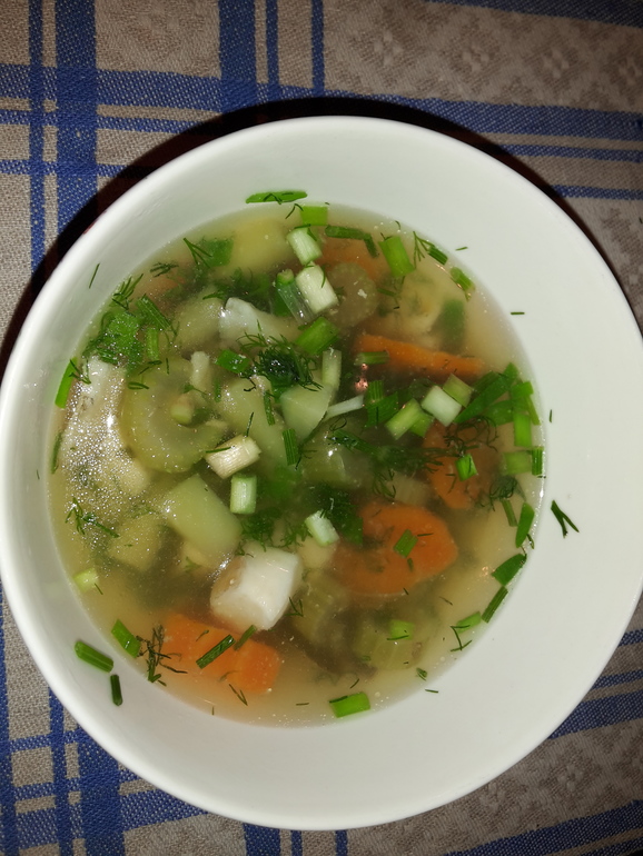 Все нарезать, посолить, залить водой. Режим "Суп".