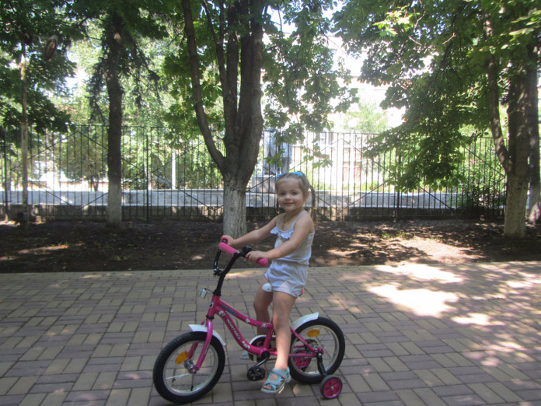На новом транспорте, говорит велик подарил папа, а мама шарики)))) ну я исправилась и купила ей для семейки кроликов ванную комнату.