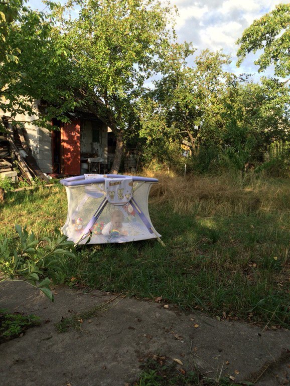 Приводим сейчас в порядок участок, который недавно приобрели. Пришлось купить туда детскую клетку, как назвал это муж, чтобы можно было спокойно работать, пока мелочь чем-то занята. Домой такую бандуру я бы ни за что не купила, а вот для дачи - самое то.
