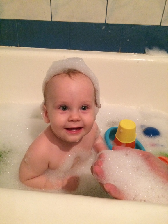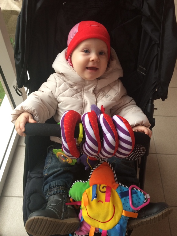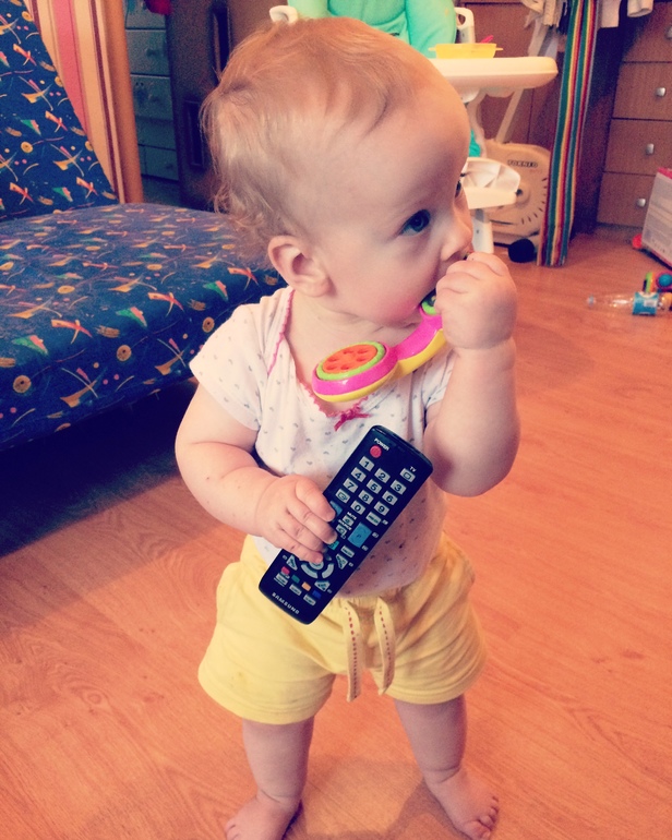 Основное достижение этого месяца - начала стоять без опоры и пытаться самостоятельно ходить. Получается пока не очень, но прогресс налицо)