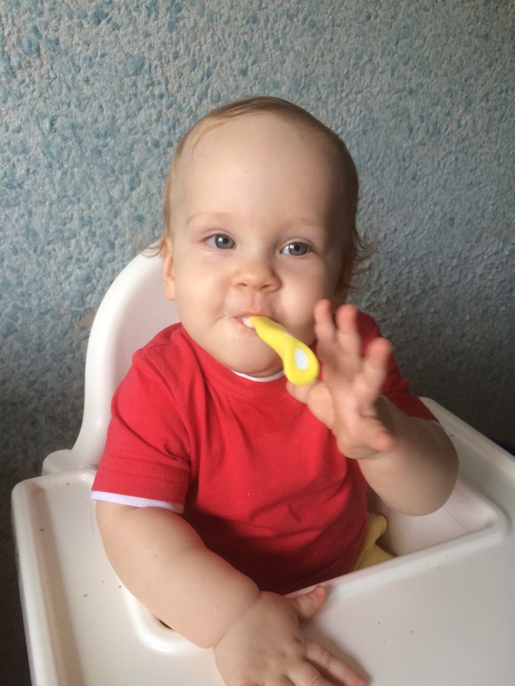Всё чаще и чаще Леся пытается есть сама. Получается мягко скажем не очень, но она оооочень старается) Поменяли стул для кормления, теперь можно не париться и давать ей хоть целиком тарелку выворачивать - убирается всё за секунды.
