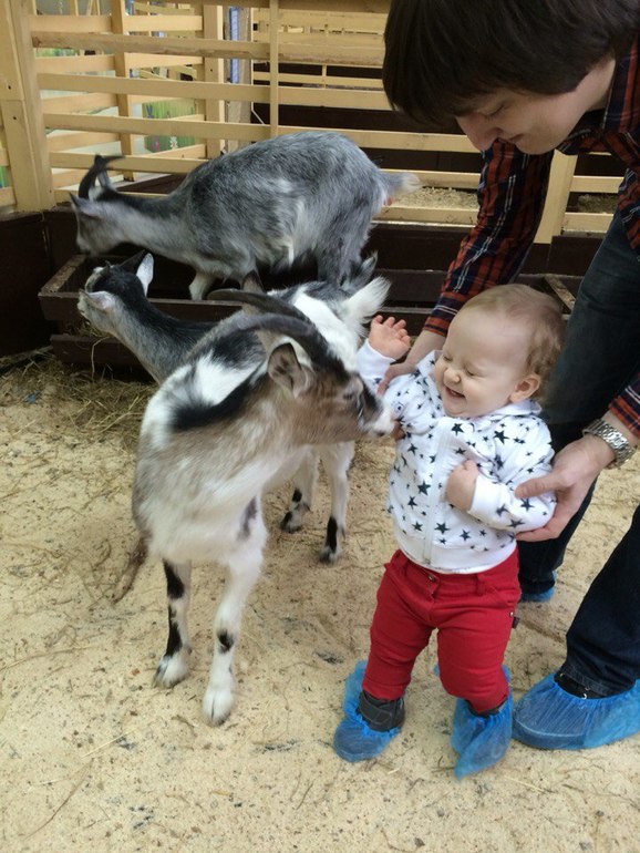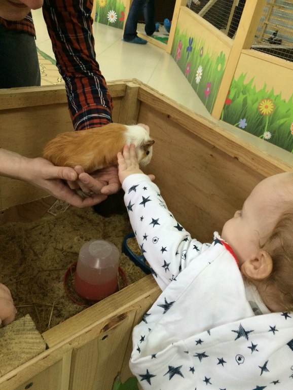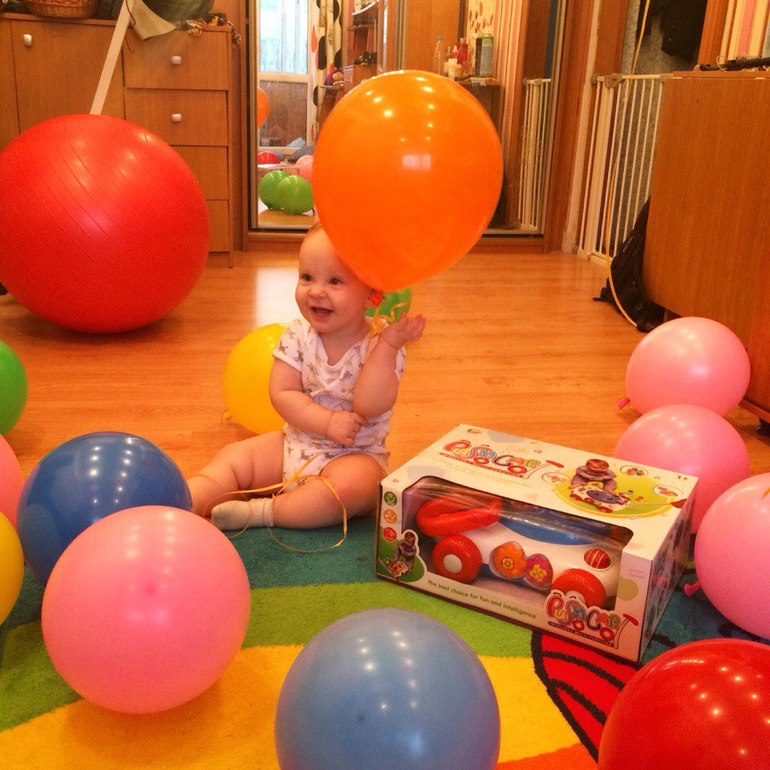 На день рождения решили не делать ничего особенного. Сходили втроём в контактный зоопарк, да пообедали в ресторане. Потом, пока Леся спала, Егор привёз десяток шаров с гелием и пару десятков обычных. Надули и устроили ей сюрприз к побудке. Вроде оценила)