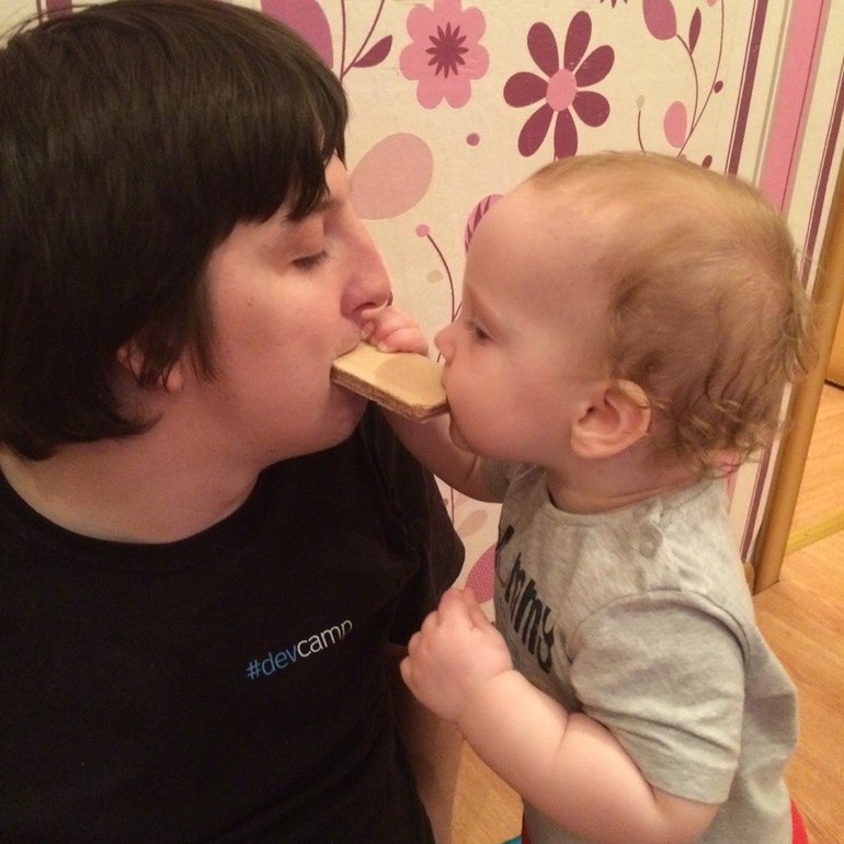 Я совсем перестала париться по поводу аллергий, в этом плане мне, ттт, повезло с ребёнком. Уже 50/50 ест с общего стола, но что-то всё-таки готовлю отдельно для неё. Недели три уже смесь почти не пьёт - все дневные кормления заменены, раз дня в 3-4 только можем дать бутылку если просыпается в районе 5 утра и по другому уложить уже никак не получается. Стала ещё ооочень самостоятельной в плане еды, постоянно требует ложку/вилку и пытается есть сама. Кухня каждый раз как после бомбёжки)