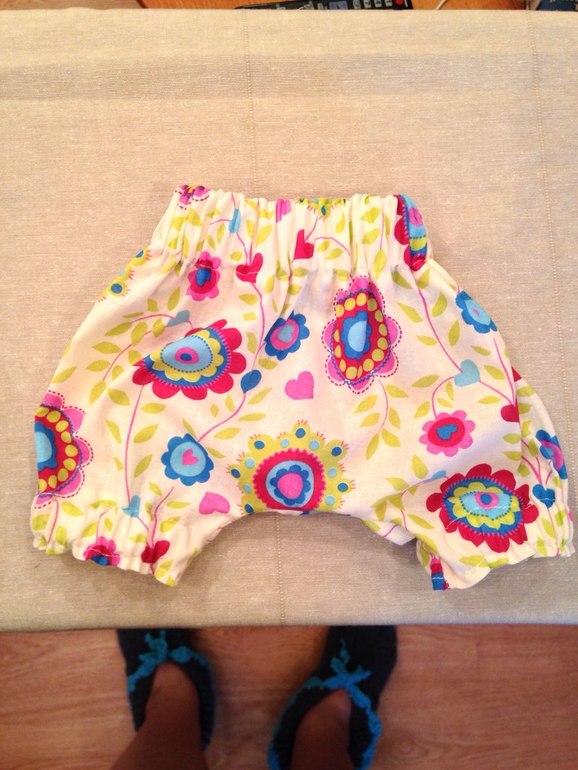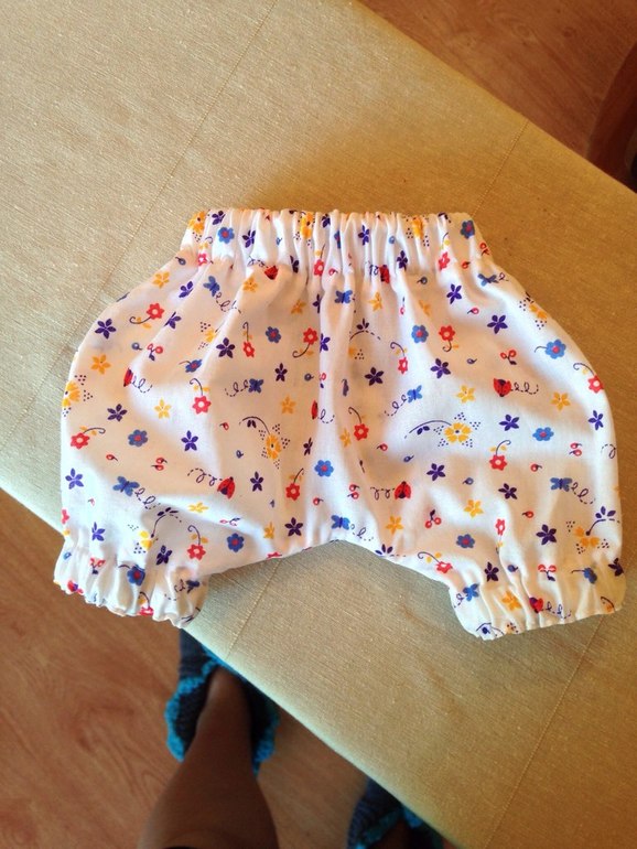 Вот такие панталончики получились, например. Выглядят, конечно, няшно, но теперь я буду аж до самых родов терзаться от того. что непонятно, что у них всё-таки с размером - на выкройке было написано 0-6 месяцев, но какие-то они совсем крошечные, что ли)