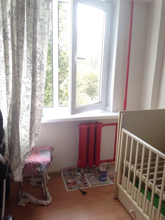 резиденция наследницыПомните эту песенку профессора Лебединского? А я вот помню. Покреативить с холодильником, конечно, не получилось, хотя с новыми обоями на кухне чёрный холодильник смотрелся бы просто замечательно а вот на издевательства над батареей в дочкиной комнате супруг дал добро и даже свозил меня в строительный гипер, чтобы лично выбрала краску того самого, подходящего оттенка. Хотя, подозреваю, он просто решил, что со мной проще согласиться, чем переубедить)
