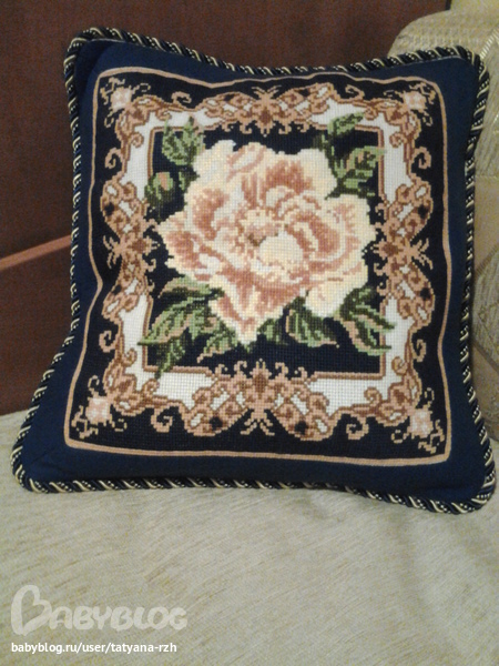 Вышила еще 3 года назад, когда только Алешкой заБ, а вот сейчас наконец оформила подушечкой. Фото конечно ужас, но хочется поделиться радостью (будет фотик перефоткаю, а пока так)