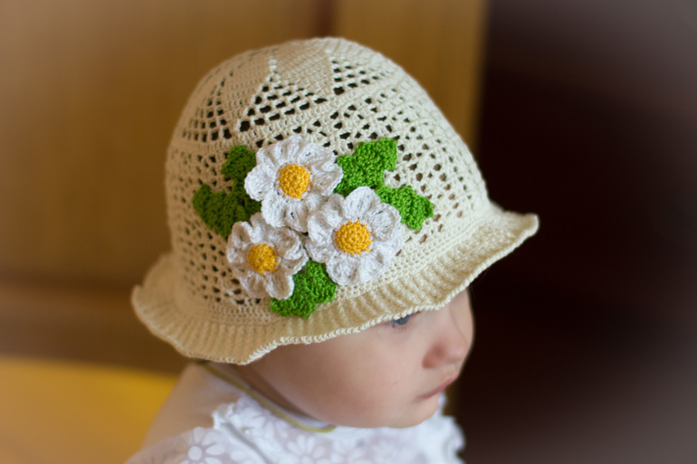 Насмотрелась я на вашу красоту и решила попробовать себя в вязании крючком. Связалась вот такая панамка крестной дочурке на лето.