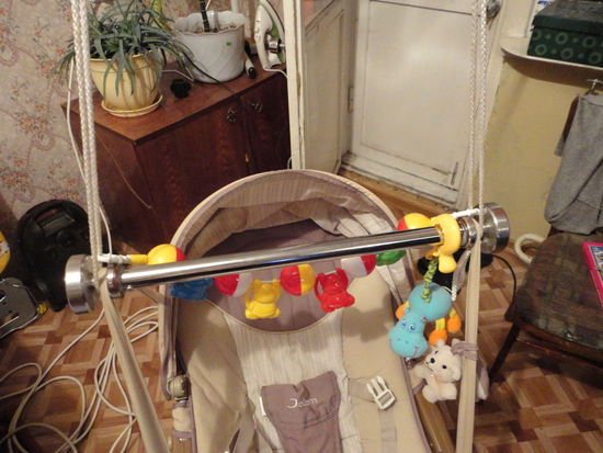 Нам его папа ещё к потолку привесил)))))И мы теперь как на качелях катаемся