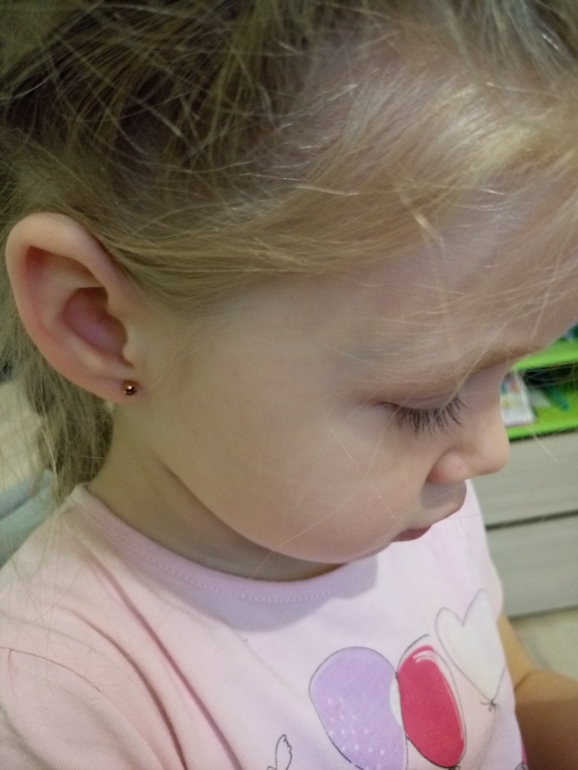 Сегодня Полинке прокололи ушки)