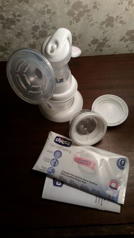 Последним взяли попробовать чикко ручной. Вещь! Во первых присосалось все к груди как надо. Сцеживалась сразу в бутылочки-контейнеры, что удобно. Единственное что останавливало - цена, для нас было дороговато на тот момент по ряду причин, но все равно купили. Простерилизовала и тд. Вот он собственно на фото.