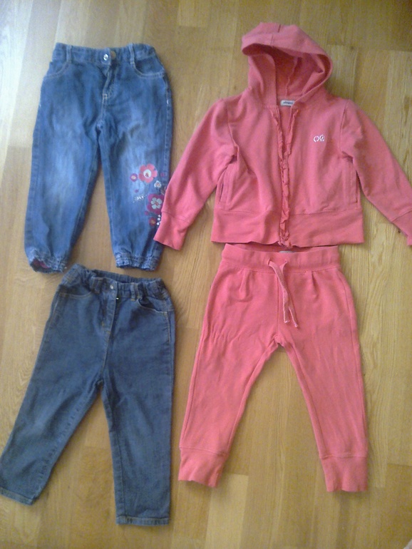 джинсы 2 пары+костюмчик(со стразами)+нежно-розовая курточка. Состояние и качество отличное. 1000 руб за все, размер 1-2 года. Химки, район Икеа