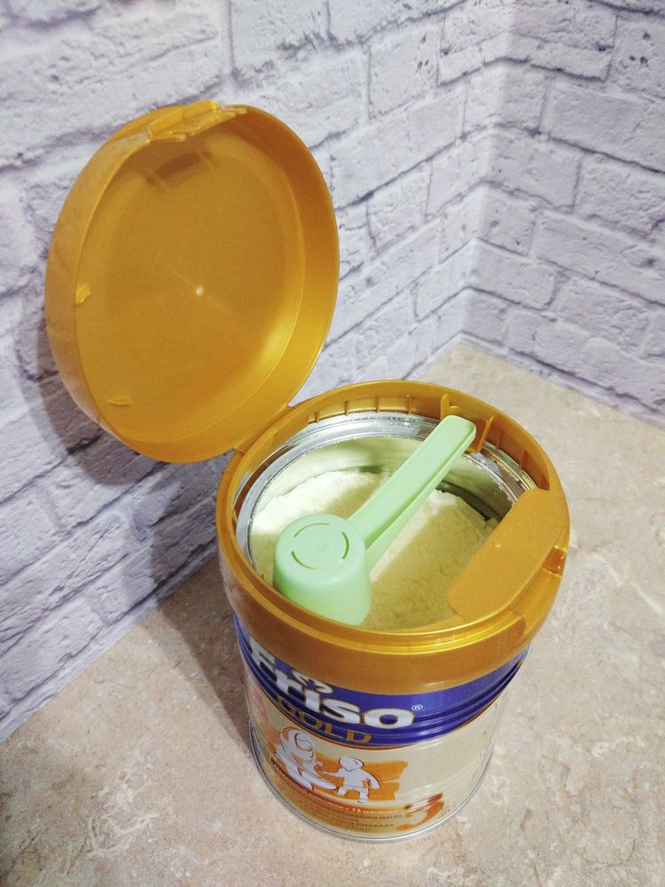 Также у молочного напитка Friso Gold удобная банка с плотной крышкой. Поверхность банки ребристая, чтобы она не выскользнула из рук. Имеется мерная ложка, которая хранится внутри банки. У крышки есть ограничитель, который помогает легко убирать лишнюю смесь с мерной ложки. Яркий дизайн с подробной инструкцией и меры дозировки. Сама молочная смесь быстро растворяется, не оставляя комочков.