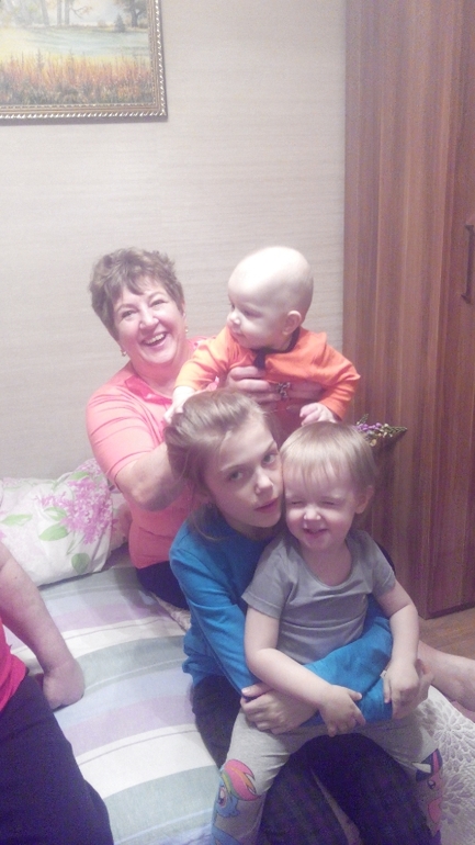 Это моя мама со всеми внуками!