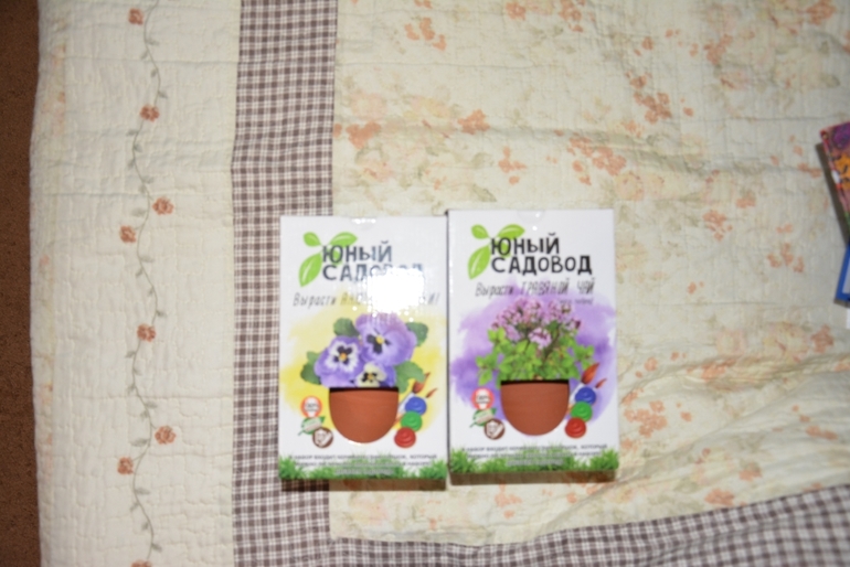 3.Юный садовод. Это 2 подарка племянницам мужа на НГ.Внутри семена, земля, горшок керамический, краски, кисть, дневник садовода.