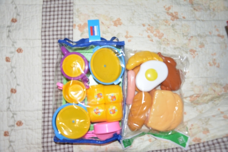 5.Простой набор посудки и набор продуктов(фрукты-овощи есть)Это все Юле.Играть будут вместе,появился интерес к ролевым играм.