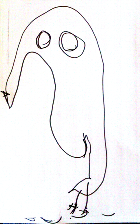 я подумала, грустный слоненок...потом до ножек экран докрутила.он мне нравится.а вообще вспоминается очень грустный мультик про птичку киви