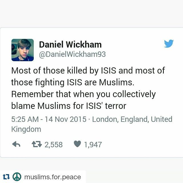 "Большинство из тех, кого убил ИГИЛ, - мусльмане, и большинство из тех, кто борется с ИГИЛ, - мусльмане. Помните это, когда массово обвиняете мусульман в терроре ИГИЛ"