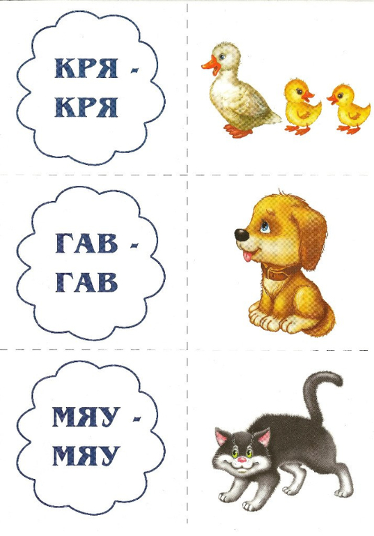 Выберите знакомые ребенку картинки (лошади, собаки, петуха, гуся, кошки), вспомните кто как говорит. Попросите ребенка показать кто говорит "мяу"? Побуждайте ребенка произносить звуки.