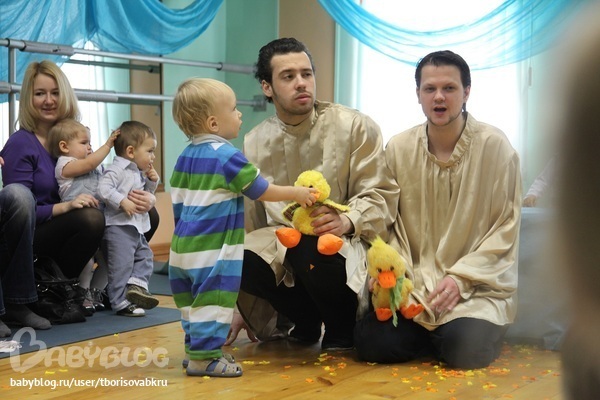 Еще ходили на спектакаль по проекту Вместе с мамой. "Маленький утенок". Сказка на 40 минут. Не понравилось мне, а вот Илюша с удовольствием везде лазил. В конце запускали маленьких утят в детский бассейн, детей было не оттащить :) Есть вот такое фото -