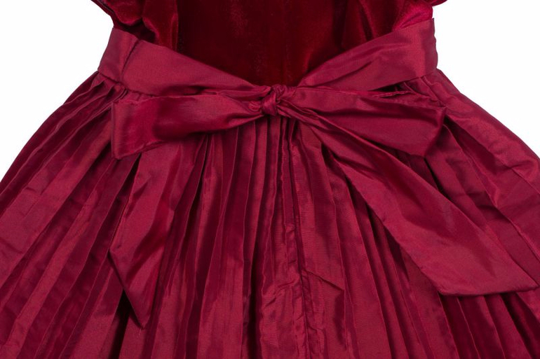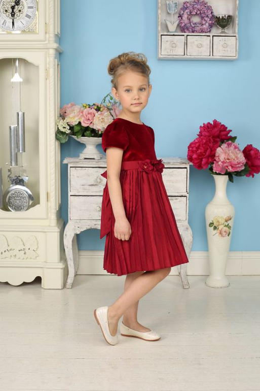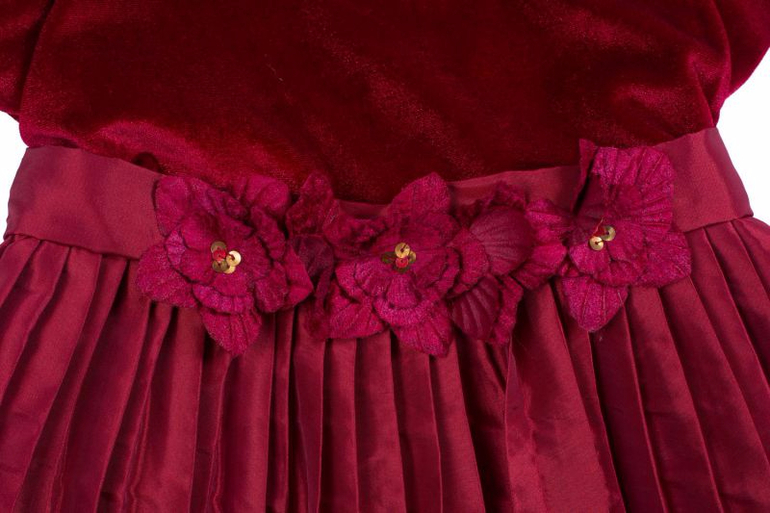 Нарядное комбинированное платье. Верх платья из бархпта. Юбка и пояс выполнены из тафты. Спереди на поясе декор из цветов.Пояс завязывается на спинке в большой бант. Платье застегивается на молнию на спинке.