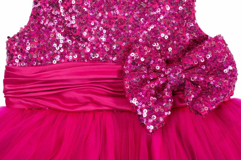 Красивое нарядное платье из комбинированной ткани. Верх платья и декоративный бант на поясе выполнены из полотна усыпанного пайетками . Нижняя юбка и пояс из атласа. Верхняя юбка из многослойной сетки.
