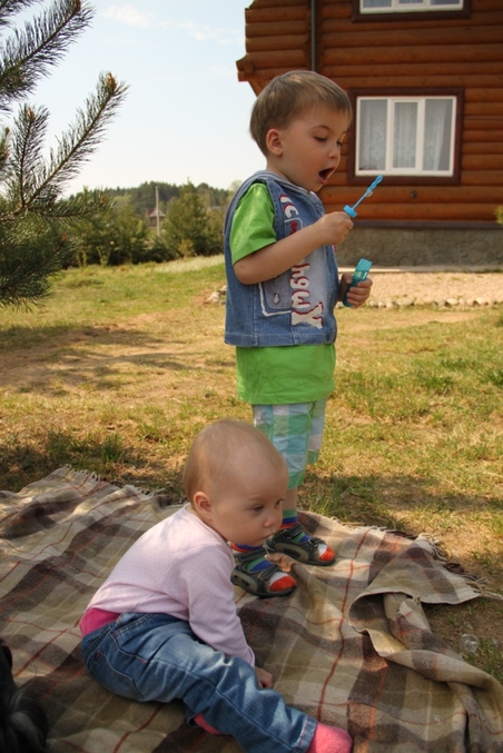 А там, вдали от шумной Москвы, вообще красота! За эти 4 дня на природе, я поняла в очередной раз, что свет на Москве клином не сошелся, и что я бы с радостью переехала бы в какой нибудь маленький городок. Вообщем, отдых с детишками- конечно сомнительный, малышня как по будильнику встакали в 7 часов утра. С нами в домике жили еще 2 семьи, друзья мужа, и только у одной семьи девочка 9 лет, поэтом было конечно дико не удобно, что мы всех будим своими детишками)) У Феди, да и у Веры случались капризы, куда же мы без них, но в основном, если делать вывод в общем, то мне эта вылазка на природу понравилась) Даже не смотря на то, что Федюха с Верой засопливели там. Уж с соплями то мы справимся :) Так что репетиция отдыха с детьми прошла на "хорошо", готовлюсь морально к поездке на море в конце июня :)