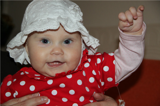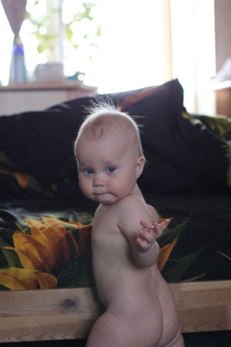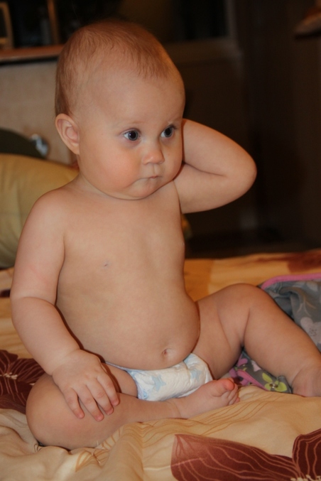 А в остальном все нормально, весим мы 8500, маленькая чето, рост 71см :) Сейчас активно везде встаем ,и ходим за 2 ручки :)
