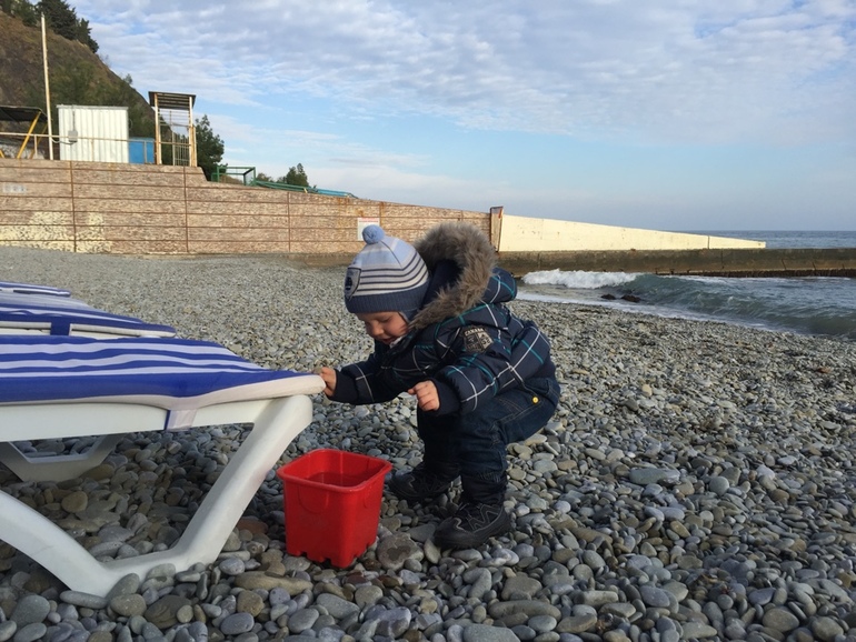Приехав в отель, увидели, что свет есть и можно выдохнуть. Заселили нас раньше положенного часа, и мы довольные пошли к номеру, вдыхая ароматы сосен и непривычных для Москвы растений. К слову сказать, территория просто шикарная: очень зеленая, в декабре ни одно деревце и куст не были голыми, чудесный пруд с лебедями и утками. Что говорить, наш годовасик спал по 3 часа в коляске на улице. Погода была в основном хорошая и солнечная. В ноябре были дни + 13- 15, в декабре температура уже была от +2 до 5. Поэтому пользуясь моментом, мы много гуляли, ездили на электромобиле на пляж Порто Маре, гуляли по набережной Алушты. На пляже к нам выходил работник и выдавал пледы и спальные мешки. В баре можно было выпить кофе или вина.