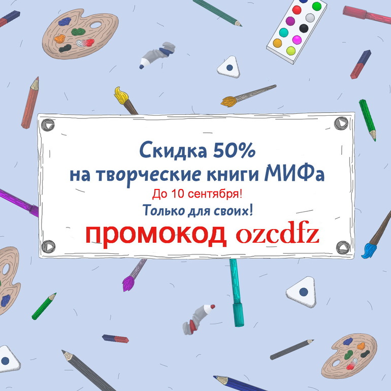 Если на книгу вдруг не 50% скидка, а меньше, вводите у каждой книги отдельно промокод E4KJXM и та-дам - доп скидка 20% (этот код, кстати, и на все остальные книги действует! не только в этой комнате!) Еще 5% за регистрацию и далее накопительная, еще 3% за оплату картой, максимум 53% скидка.