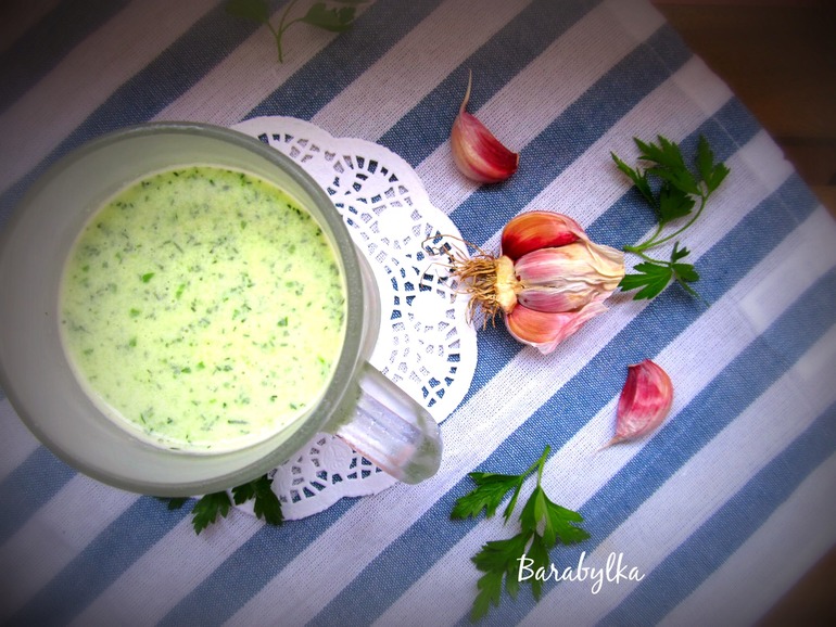 Основные компоненты: кислое молоко или йогурт, огурцы, чеснок, грецкий орех, укроп, оливковое масло, вода, соль, специи.