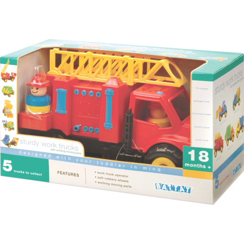 Пожарная машинка с двумя пожарными и подъемником. Нажмите на голову водителя, и машинка заведется и поедет. Натолкнувшись на препятствие, машинка остановится и поедет назад. Машинка оборудована поднимающейся лестницей и шлангом. Предусмотрено автоматическое выключение. Батарейки входят в комплект.