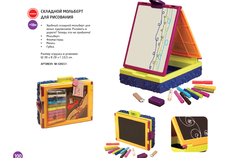 Доска для рисования - это компактный складной мольберт. Дети могут создавать свои шедевры на мольберте прямо за своим столиком.