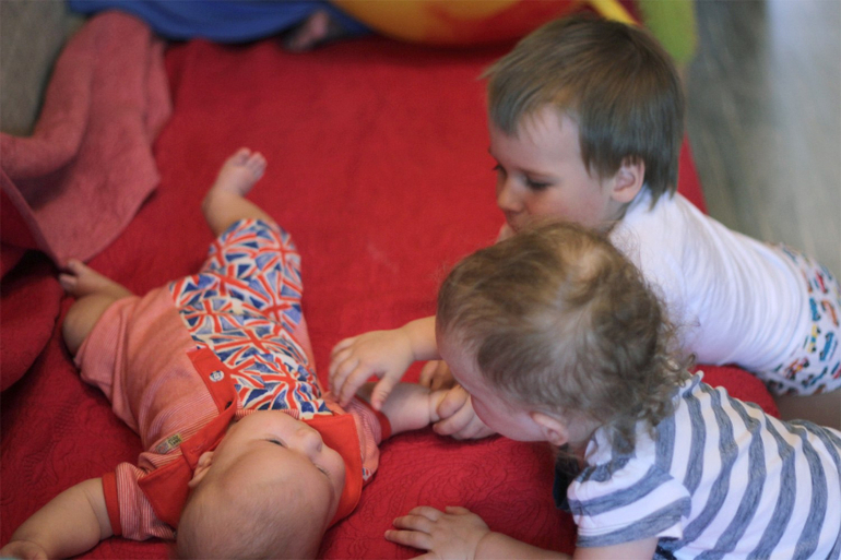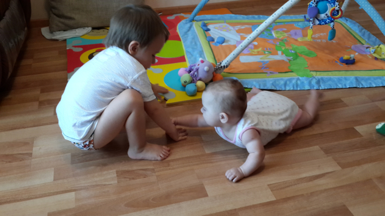Саня знакомится с Викой (сестёнкой Леры, которая называет её Кулькуль))). Вика - это ребёнок радость, она улыбается постоянно. Это так классно))
