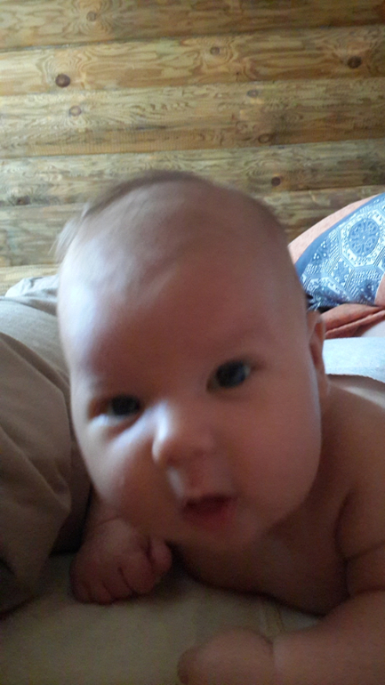 У нас всё хорошо. Завтра АндреиЧу уже 2 месяца будет.Ест, спит, гулит, улыбается. Почти перевернулся на живот, любит спать на животе и на боку. Требовательный становится. Любит ходить на ручках по квартире/улице. Голову уже держит хорошо, но быстро устаёт (ещё бы, такие щёки )))