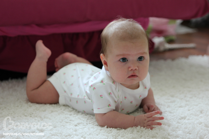 Стефания у нас похоже оч ранняя девочка, рвется сидеть, стоять...живет на полу))))) Мне так удобней и спокойней. Вчера переползла или перекатилась через всю детскую, нашла я ее под кроватью у Амалии)))))