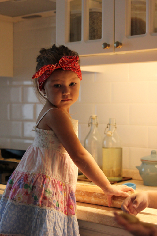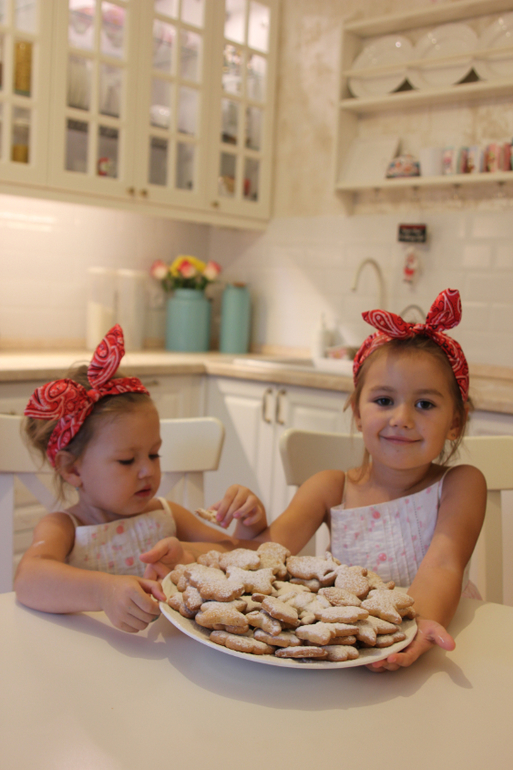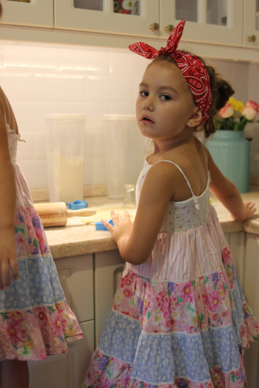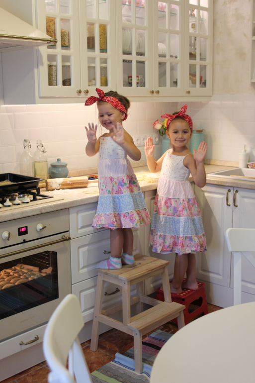 ой, какая прелесть)))) девочки-волшебницы на кухне творят! и платья-то у них одинаковые, и повязки на голове тоже))) и настроение отличное)))