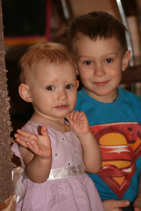 а сегодня ходили в пол-ку---красота)))и пусть они носились и орали там,но они были вместе.и мне надо было бегать за Ксю вечно-убегающей,Андр хоть и бегал с ней,но приводил всегда ее сам.Очень за нее переживает,когда она не туда идет или убегает...