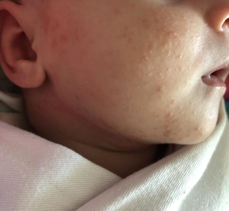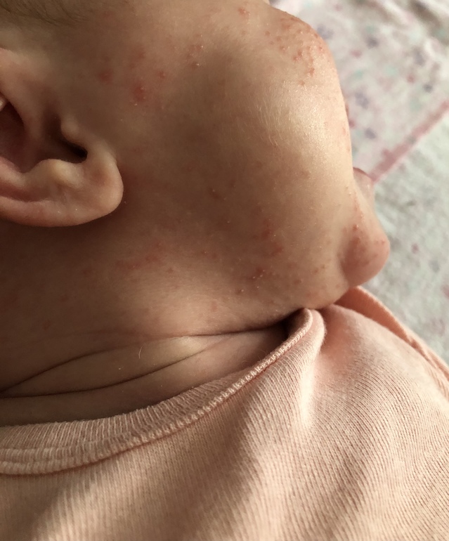 Девочки, привет, дайте совет, у кого были похожие ситуации. Сыпь появилась недели через 2 после рождения. Начала смотреть по питанию, но ничего не проходит, завтра нам уже месяц и вот такая красота. Сыпь на первый день выглядит просто красными пятнышками, вечером этого же дня или на следующий день появляется Белый прыщ, который проходит через какое-то время, но потом все повторяется. Сначала локализовалось только на щёчках, потом поползло на лоб, сейчас прошло, теперь поползло на шею и ключицу, ниже груди ничего нет. Педиатр с медсестрой приходят и говорят в один голос «Мама что-то не то ест» а я сейчас скудно питаюсь, боюсь навредить ребёнку. Максимум из того, что нужно есть с осторожностью - это молоко (пью белёный чай и чуть чуть добавляю в кашу) и зефир, но сейчас его не ем. А самое главное начала замечать, что как погуляем, у неё они бледнеют. Фото прилагаю. Первое фото после прогулки, второе до.