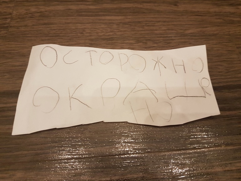 Так вот, когда ребятенок уже в возрасте самостоятельно сложить буквы в слоги, а слоги в слова, то придя домой, может появиться новый прикол) у нас вот появился:) Теперь дома у нас на стульях, на диване, на полу таблички "осторожно окрашено", и непременно эти таблички надо обходить, перепрыгивать, переступать...а то ж...сама, мама, говоришь, что на окрашенную горку нельзя:)