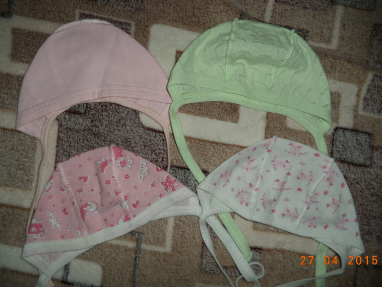 39. Чепчики 0-6 месяцев по 20 руб, первый с начесом, второй с дырочками.