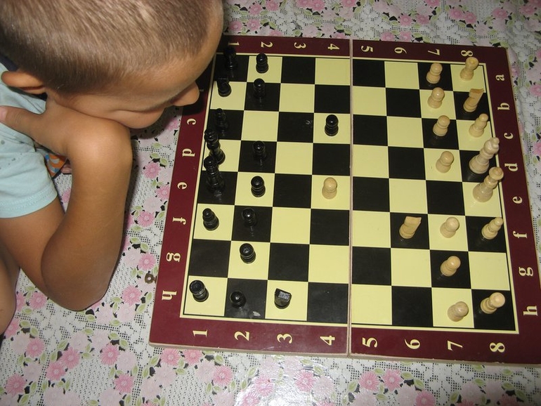 На 7 лет мы поступили еще проще. Искали уже магазины игрушек в инете. Так я узнала о замечательном сайте sima-land. Ну, лучше поздно, чем никогда. Здесь мы заказали большие шахматы (фото). Но до этого уже успела купить ему маленькие в ТЦ. Они теперь походные у нас) Как минимум раз в неделю мы играем то папа, то я. Раньше сын играл в них за компом, так что быстро освоил.