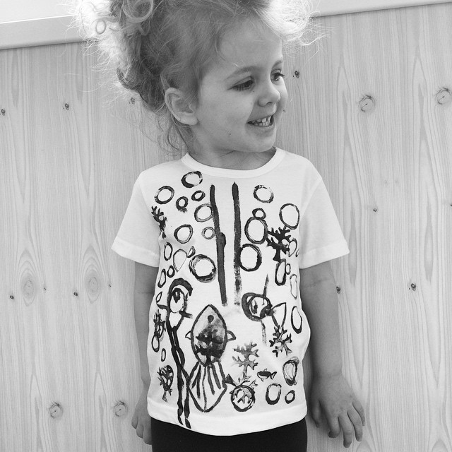 А вот и результат✌️ мы довольны! Штампы были не только кораллы, но и пузырьки. Справа малютка Флаундер, посредине я каляку трансформировала в рыбу-маму, справа Милла нарисовала рыбу-папу с длинным хвостом похожим на ноги. Над ними "дорога", так решил автор. Штампы из картошки, черная перламутровая краска для ткани, белая футболка, и у нас есть не просто рисунок, а совершенно уникальная вещь. Будем ли мы ее носить? Еще бы, и к ней черно-белую юбочку сошьем. #р_и_с_у_е_м_вместе2 #р_и_с_у_е_м_вместе_черным_и_белым в паре 19 с @verkhom_na_pomele жюри и организаторы @wilddelight @irinaarchikids #ми_познает_изо