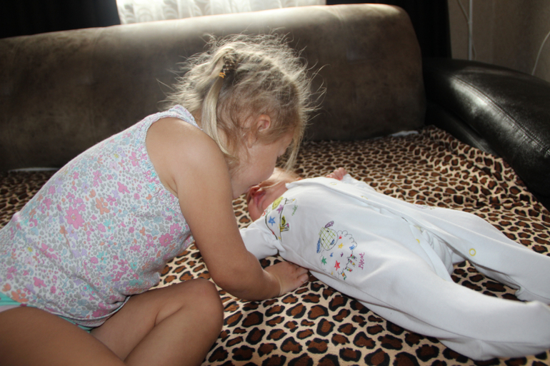 Гулит во всю уже давно,месяца еще не было начала,смотрит в глаза ждет когда ты ей улыбнешься,улыбашка моя.Ночью спит со мной как и Арина,просыпается раза три если живот не болит,днем плохо спит,ну это мы наверное ей мешаем.Часа по 2 уже может не спать наблюдать за нами,игрушки любит рассматривать ,ручная конечно хочется везде поглазеть и сразу затихает на руках)